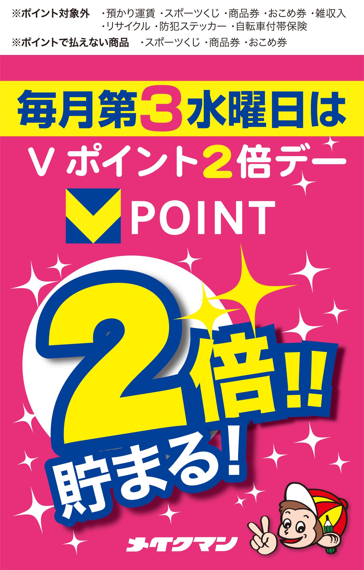 - 【毎月第3水曜日Vポイント5倍デーのお知らせ!】